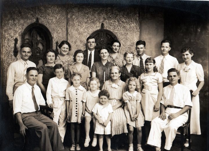 Starting in the back row from left to right, Vernon Burns, Mary Frances (Burns) Williams, Dick Jackson, Thelma Ozella (Billingsley) Jackson, Ruth Burns husband, I think his first name is Lawrence, Aubrey Edward Reynolds, Bertie (McClanahan Burns) wife of James( Jim ) Thomas Burns, second row Velma E. (Ward) Burns wife of Albert Vernon Burns, Lucille (Burns) Bigbee, Ruth Ann Burns, my mother Clara Sybil ( Burns )Reynolds, Shirley Lynn King, third row seated Charles Strickland Burns, standing Hervey Bowling Bigbee, Patsy Ruth Bigbee, Rosa Lynn Bigbee, Wallace Burns Bigbee, Effie Ruth (Wallace) Burns, my oldest sister Patricia (Ann Reed) Reynolds and seated James Thomas Burns.